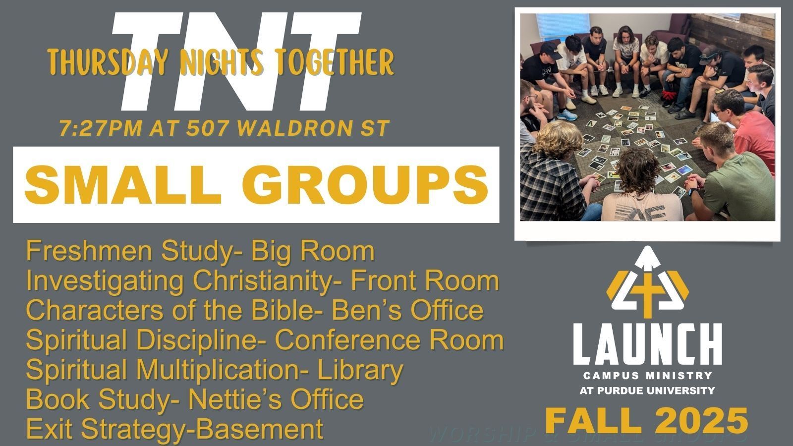TNT happens EVERY Thursday night during the semester at 7:27pm at 507 Waldron Street.